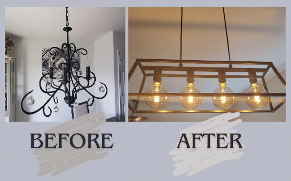 We wanted a light that better matched the lights above our island. We found these amazing giant rounded Edison bulbs at The Home Depot as well as this new light fixture. You may think this is much more boring than the old one but it fits the space much better.