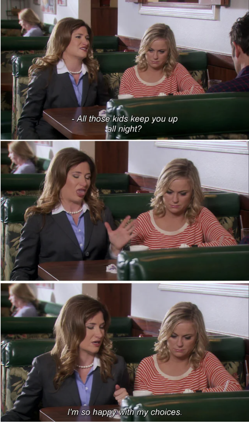 As a coping mechanism we still often quote Jen Barkley on the show Parks and Recreation, who in reference to children says “I’m so happy with my choices.” She repeatedly informs everyone she thinks children are “gross”, messy, noisy creatures and is glad she does not have any of her own. Although our “choices” for the last eight years add little to nothing to the reasons we do not have children; Infertility is the villain that, so far, chooses the no children route for us.